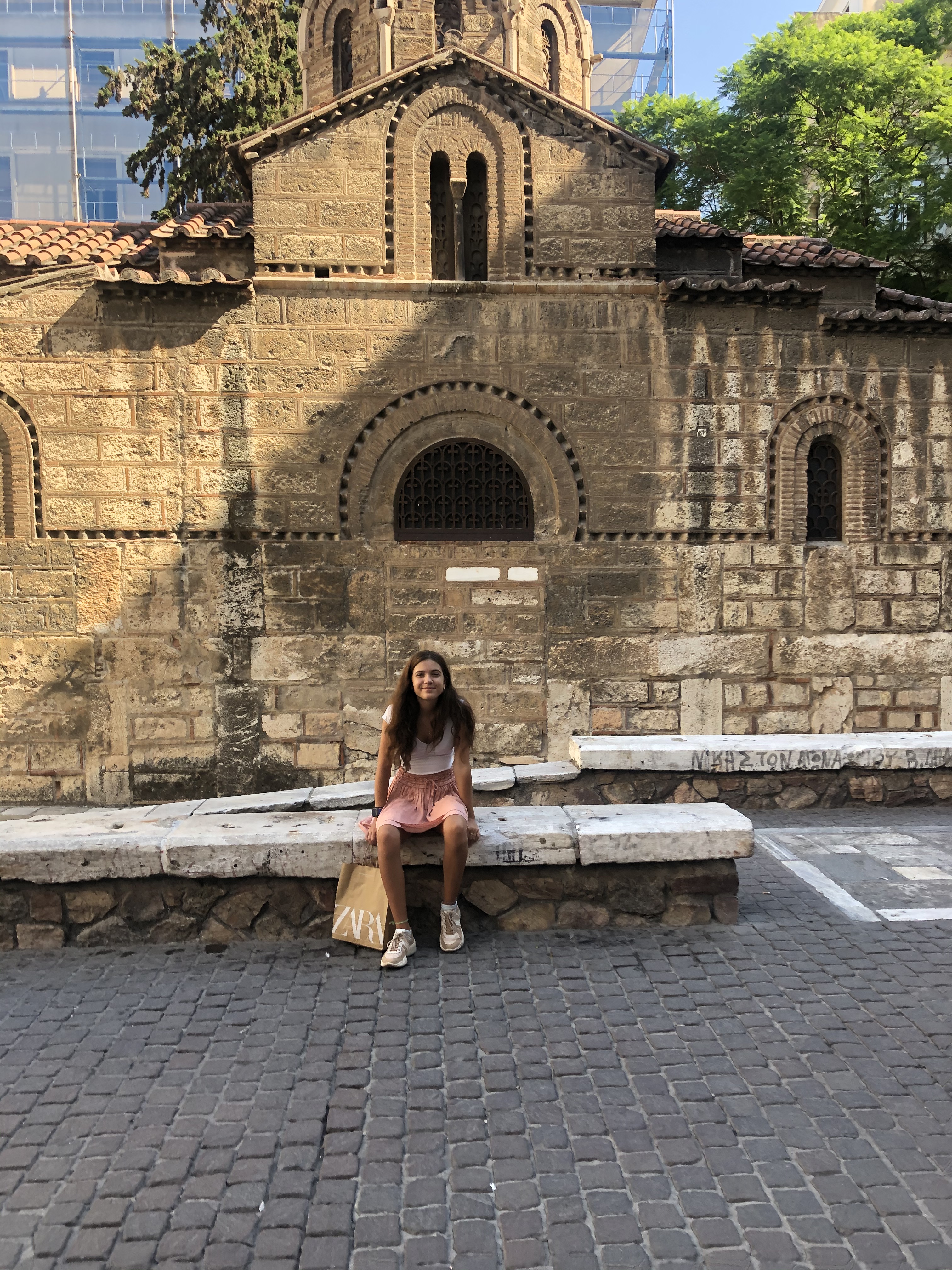 Today we managed to get a better sleep then yesterday so we were set out to have a full day of adventures. Our first mission was to visit the famous flea market of Monastiraki. We stopped along the way to grab a quick drink and cool off from the blistering heat. When we arrived we took a glance around almost every corner you could possibly visit until I found the perfect item, a purple skirt with white flowers from H & M.