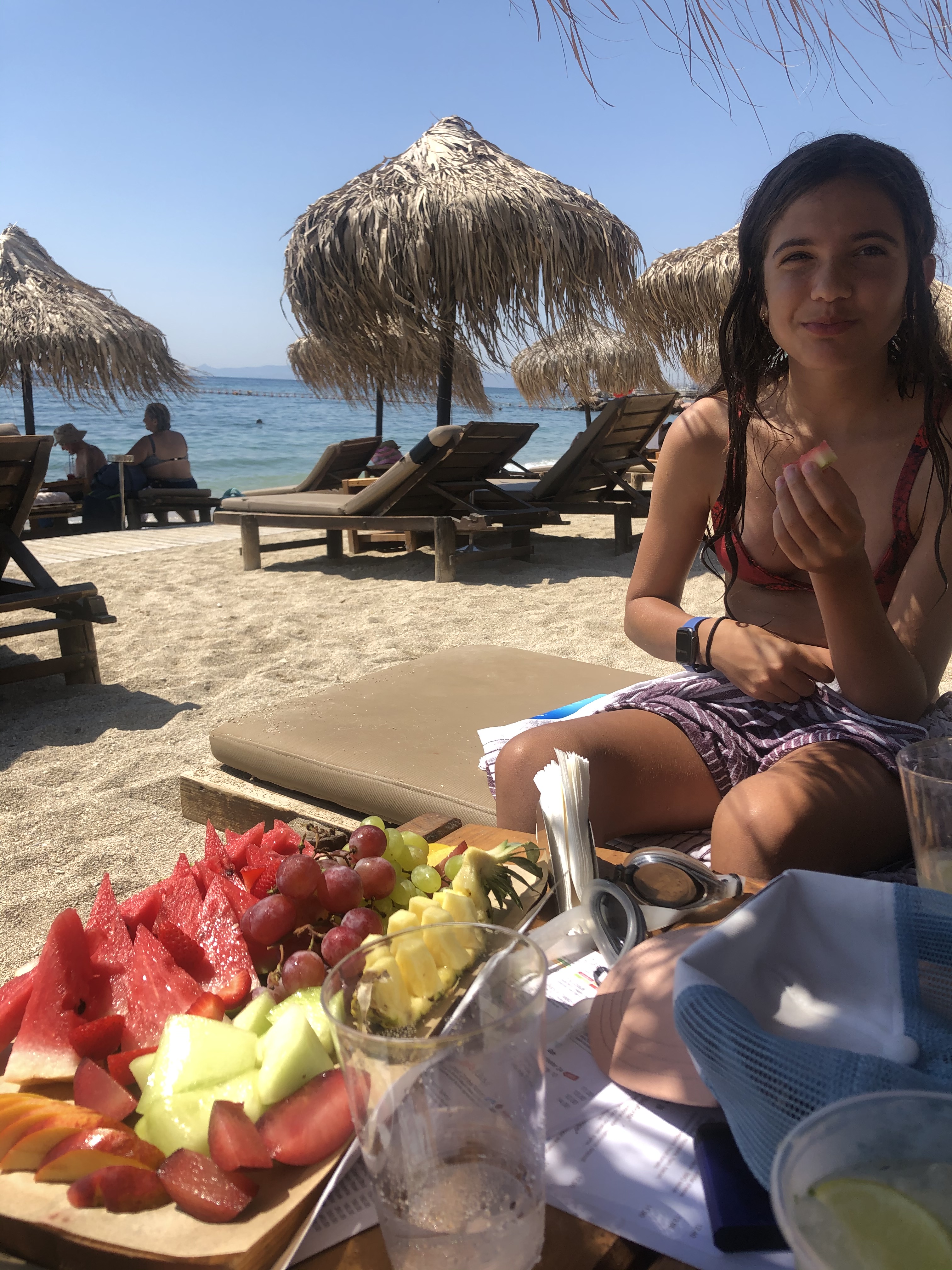 After taking a nice warm shower and rinsing ourselves of chlorine we put on our nice clothes and headed out to find a nice restaurant to eat dinner at. We stumbled upon a place with music and delicious meat so of course we had to take a seat, getting a surprise visit from a nice stray cat was also a delight. Towards the end of our stay they gave me a plate to break on the ground which is very traditional hear in Greece. We payed, danced to some music, grabbed some ice cream and then headed back for a good night’s sleep. I can’t wait for tomorrow!