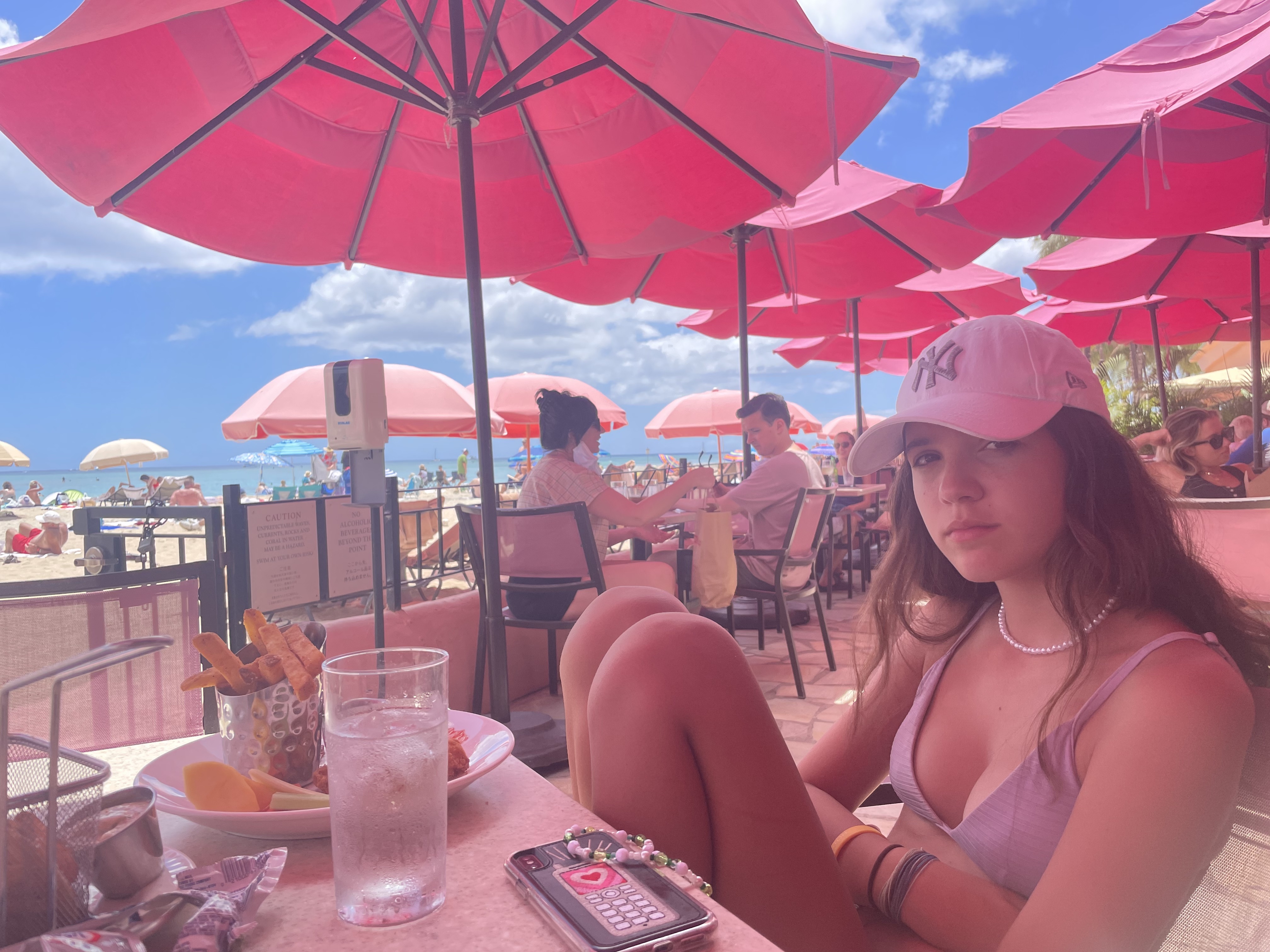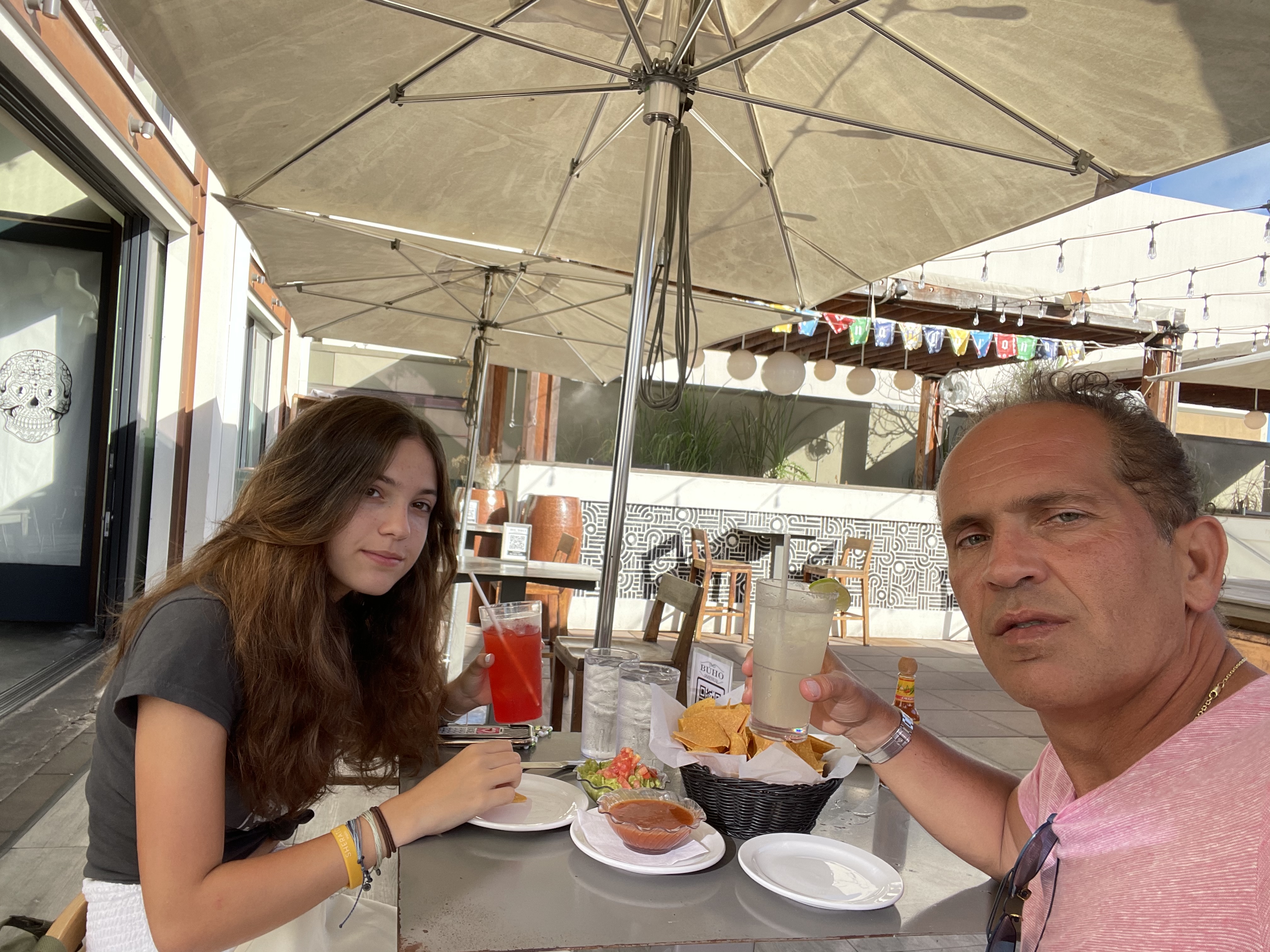 Today was nothing too special although we still managed to have some great fun as usual. In the morning we visited the pink hotel which was right next to ours and then through one of the hotels restaurants exited out to the beach. We stayed at the beach for a little where we got some drinks and went for a swim. After we decided we couldn’t handle the heat any longer we went out to one of the little shopping districts where both me and my dad got bathing suits as well as a complimentary tiki cup. We went back to our room for our usual midday rest and then made our way to a Mexican restaurant recommended to us by our friend where we both had tacos and some delicious churros to share for desert. We ended the night pretty early since we were both very tired.