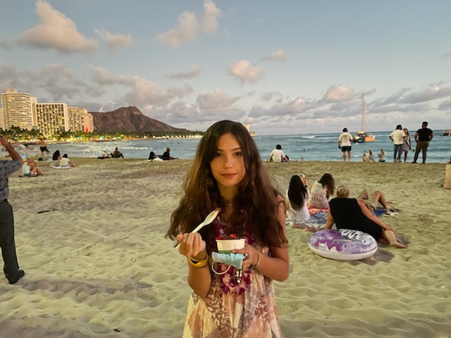 This morning was more chill than the rest, after waking up kinda tired we rested for a bit in the hotel before leaving to go to magic island. In reality it’s not an island but a park with a beach at the end which is surrounded by rocks that allows the waters to be calm instead of moving with motion from the waves. At magic island you can snorkel although unless you go out towards the edge all you will be seeing is sand and take a diving class for beginners where you learn all the basic knowledge. Once we got back to the area around our hotel we went up to a little bakery called Banan which was recommended to us by a friend which sells açaí bowls and is partially owned by Carissa Moore’s husband. It was by far the best açaí bowl I’ve ever had in my life and I highly recommended it. For dinner we ate in our hotel with our friends to celebrate their anniversary and then went back to Banan for another açaí bowl which we then proceeded to walk down the beach to end our night.