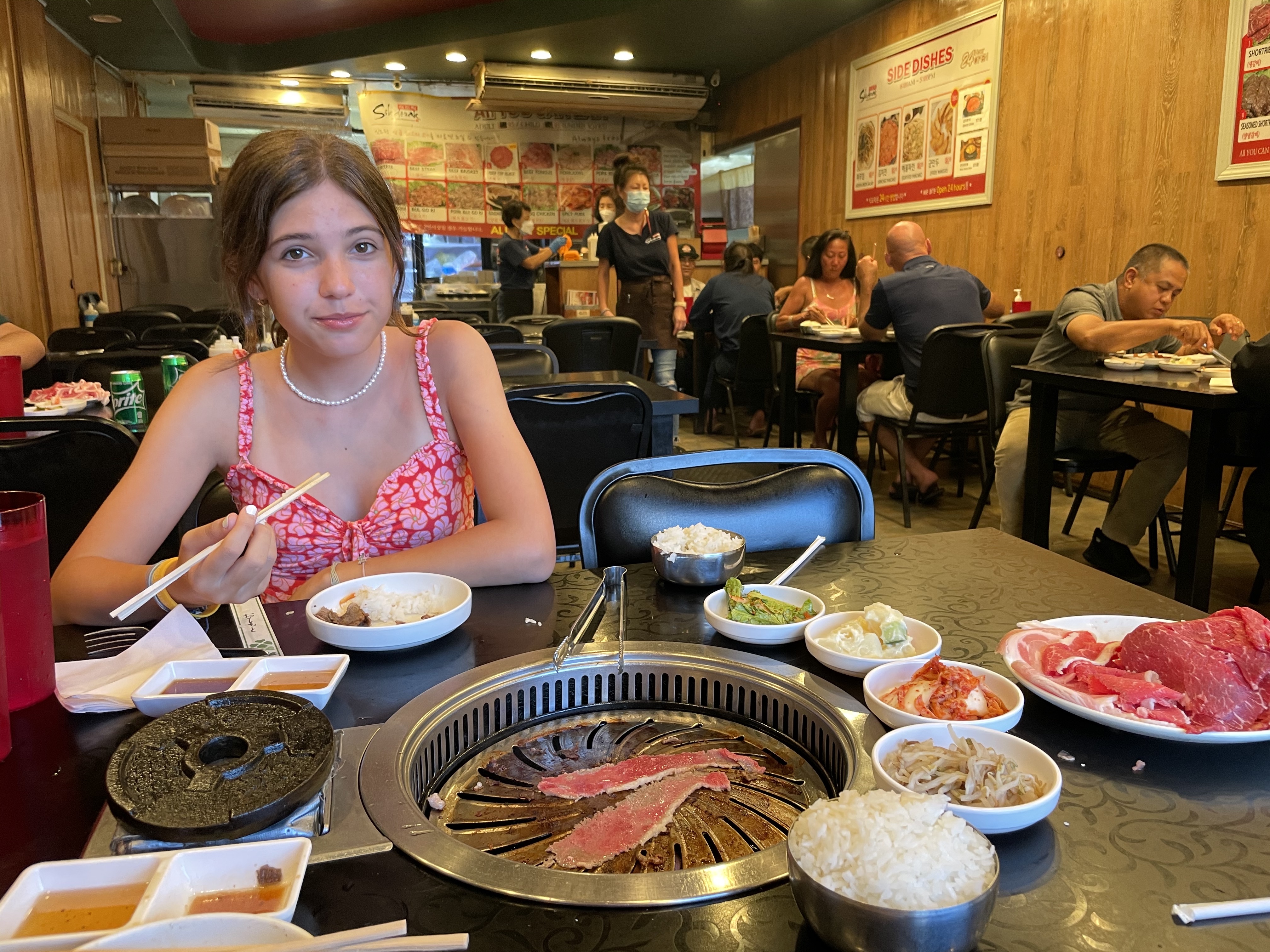 Since yesterday was packed full of things we decided to take it easier today and hang out around the hotel. In the morning we grabbed another acai bowl that happened to be right next the beach we were going to. During our short hours at the beach we saw at least 5 boats come in and out, many many surfers, paddle boarders, and like us, swimmers. We decided to make our way back to the hotel to take a quick nap before we headed out for dinner. Today’s dinner was recommended to us by one of my dad’s work colleagues. On our way there we stopped by a surf shop and took a quick walk around the mall before arriving to the….. Korean Barbecue!!! It was delish to out it easily, you would order at least 4 different type of meats and cook it right in front of you yourself along with some yummy side dishes provided by the restaurant. This is something I definitely recommend to all.