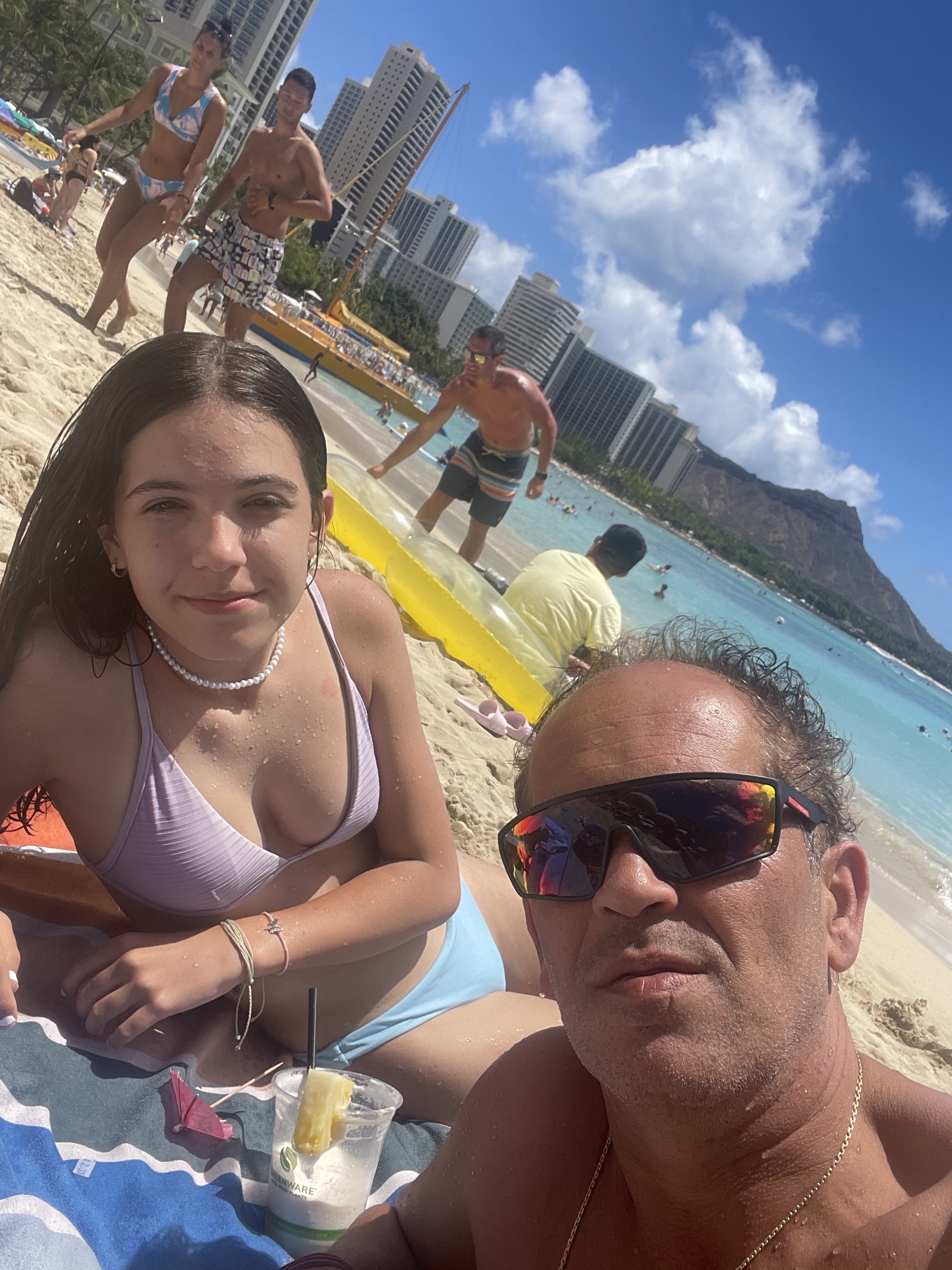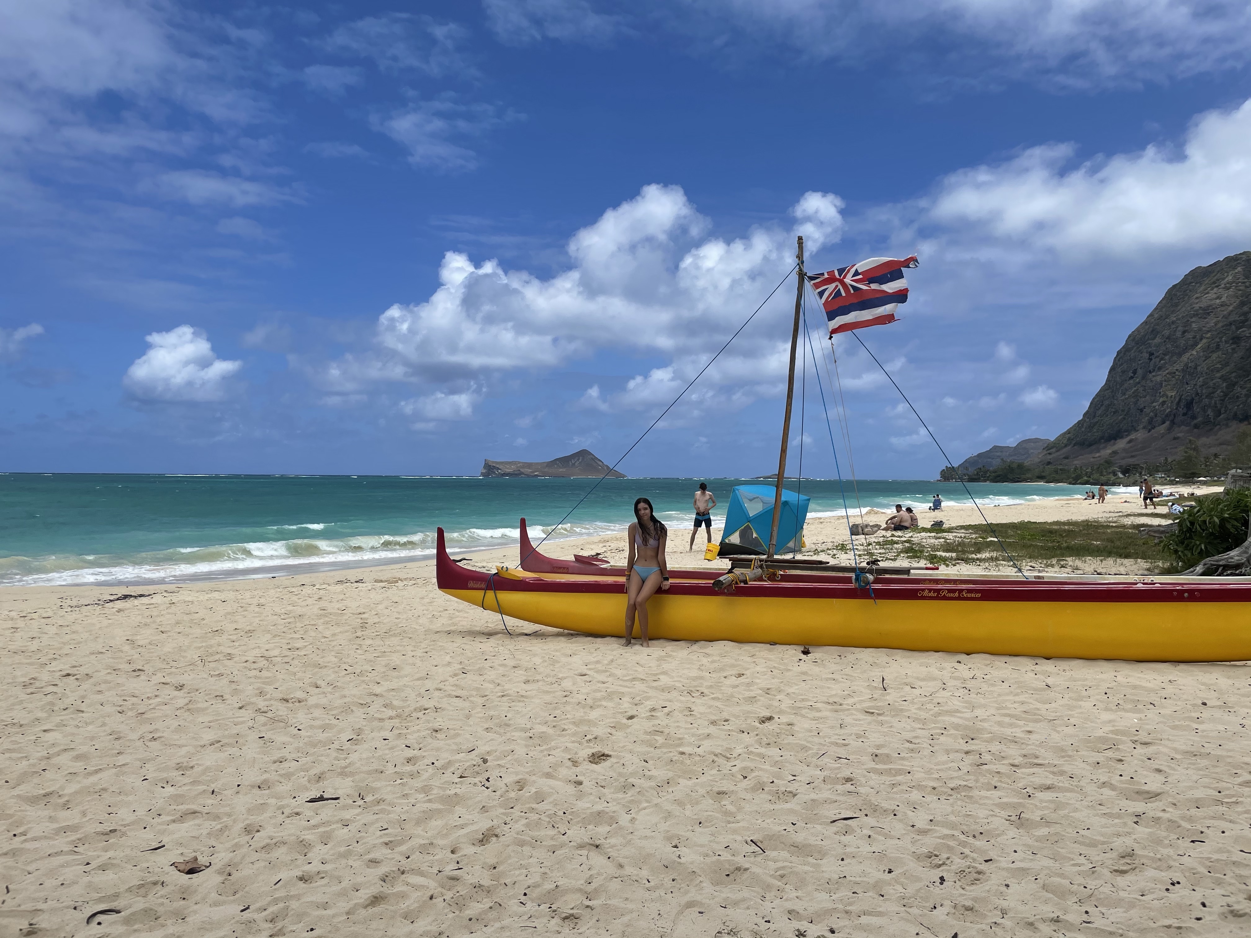 Today was a day full of adventure. The previous night we had rented a car from the airport for the day so we had a full day of driving ahead of us. We were lucky enough to get a Jeep Wrangler so we put the top and sides down and rode hours in the wind. Although it was extremely refreshing to get a nice cool breeze in the hot temperature it was so windy I couldn’t see a thing and had to tie my hair back along with my cap so it wouldn’t fall off. Our first stop for the day was the Dole plantation (pineapples) towards the north. We took a walk around where we saw several species of flowers, bananas, coffee and of course pineapples. We grabbed some pineapple soft server before heading to our next stop. We were now at the Valley of the Temples where we saw a beautiful temple with some rich history. After we decided to make our way east to Waimanalo beach to cool off and rest a bit. We had a small moment where a part of my braces fell off and my dad had to cut off some of the wire but all ended up well. After a day full of excitement we returned the car at the airport and made our way back to the hotel relax.