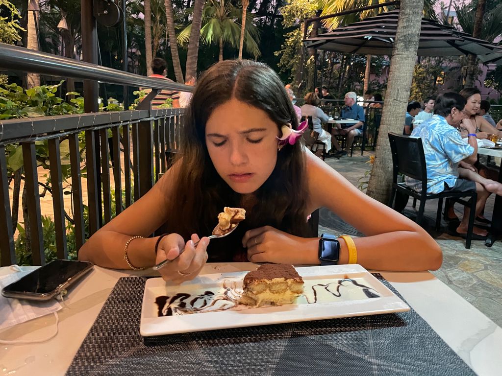 Since today was our last full day in Hawaii we decided to make the most of it while still staying in the area. We visited the pink hotel again this time for some souvenirs and some croissants as well as making it back to Banan for the last time. We made our way back home to rest for a bit and then set off to find some turtles once more. Since we made it out pretty late all of the paddle boards were taken and we had to set off on some foam surfboards. We paddled out into the reef and patiently waited until we begun to see some turtles pop their heads out of the water for a breath of air. We managed to see at least 8 or 9 before heading back to return or boards. For dinner tonight we decided on some Italian at a restaurant right in front of our hotel. We both got some pasta and yummy desserts before saying goodnight.