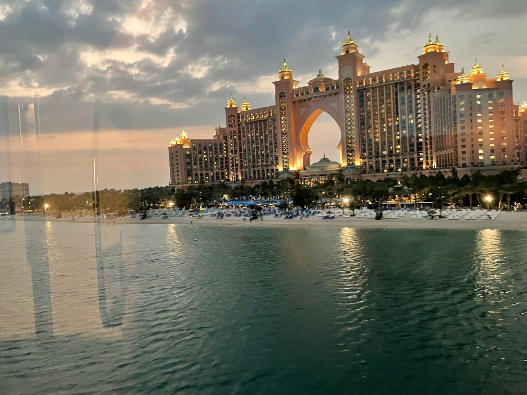 Although we only really stayed in one location today we sure did manage to have a lot of fun. Our destination for today was one of the world’s largest water parks, Aquaventure. Our first ride of the day had go be easy, the lazy river seemed just the way to go. To our surprise it finds out the some parts of the lazy river isn’t so lazy after all, on our tubes the workers would push us onto some ‘rapids’ to gain a little speed and to get ourselves wet. When we met up with our friends we went on 2 group rides with the tubes that took us up, down, left and right. Our last ride of the day and the most famous was the ride through a shark filled aquarium. It has to be by-far one of my most favorite water rides I have ever been on. To get home we decided to take the monorail for a more scenic travel of Dubai. By the time we got back home we grabbed a quick bite, said good-bye to our friends, and then headed to the mall. Our main goal was to find a dress for me for my winter ball (spoiler, we did). When we finally arrived home for the night we were all so tired that we quickly went to sleep.